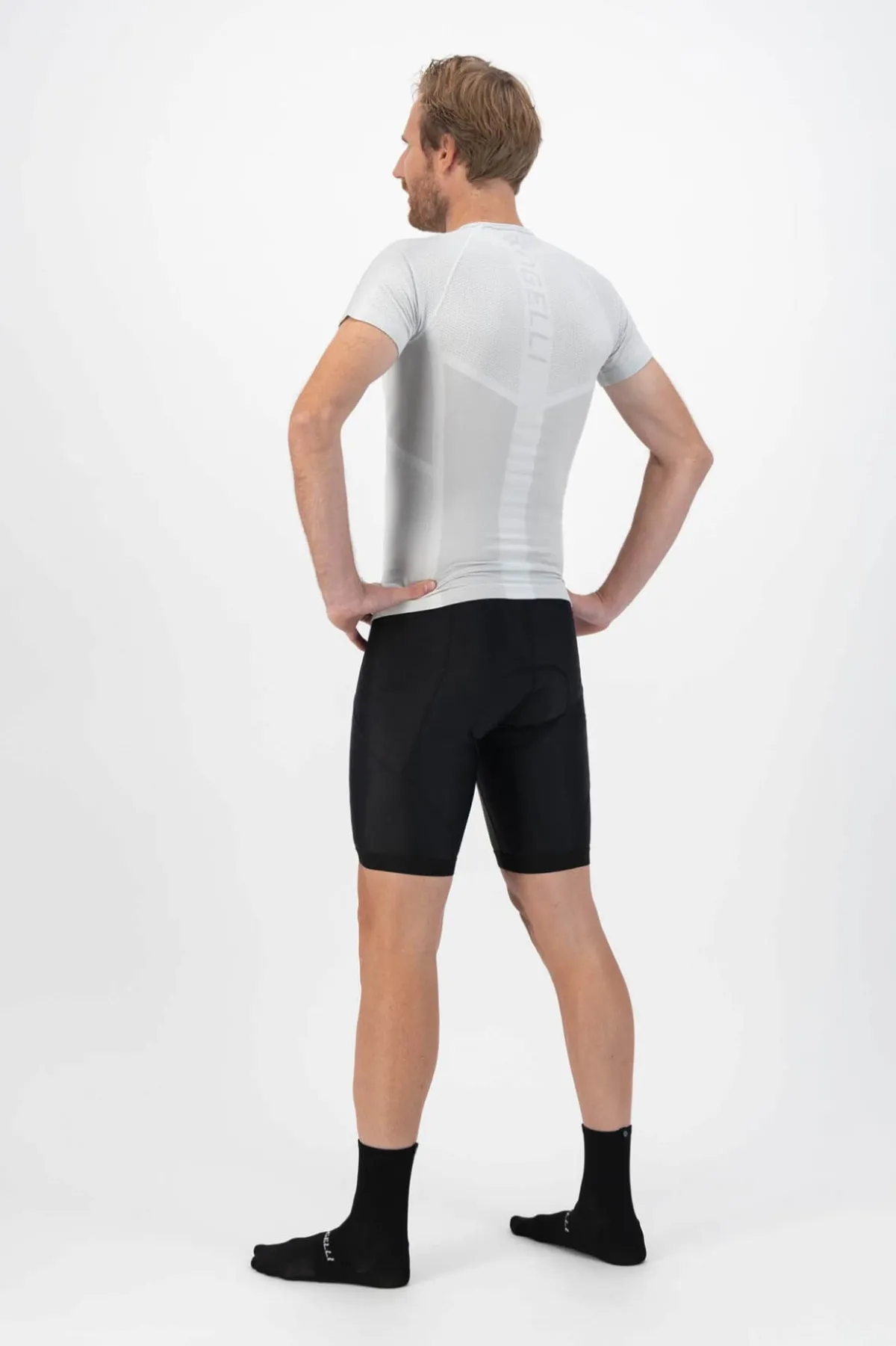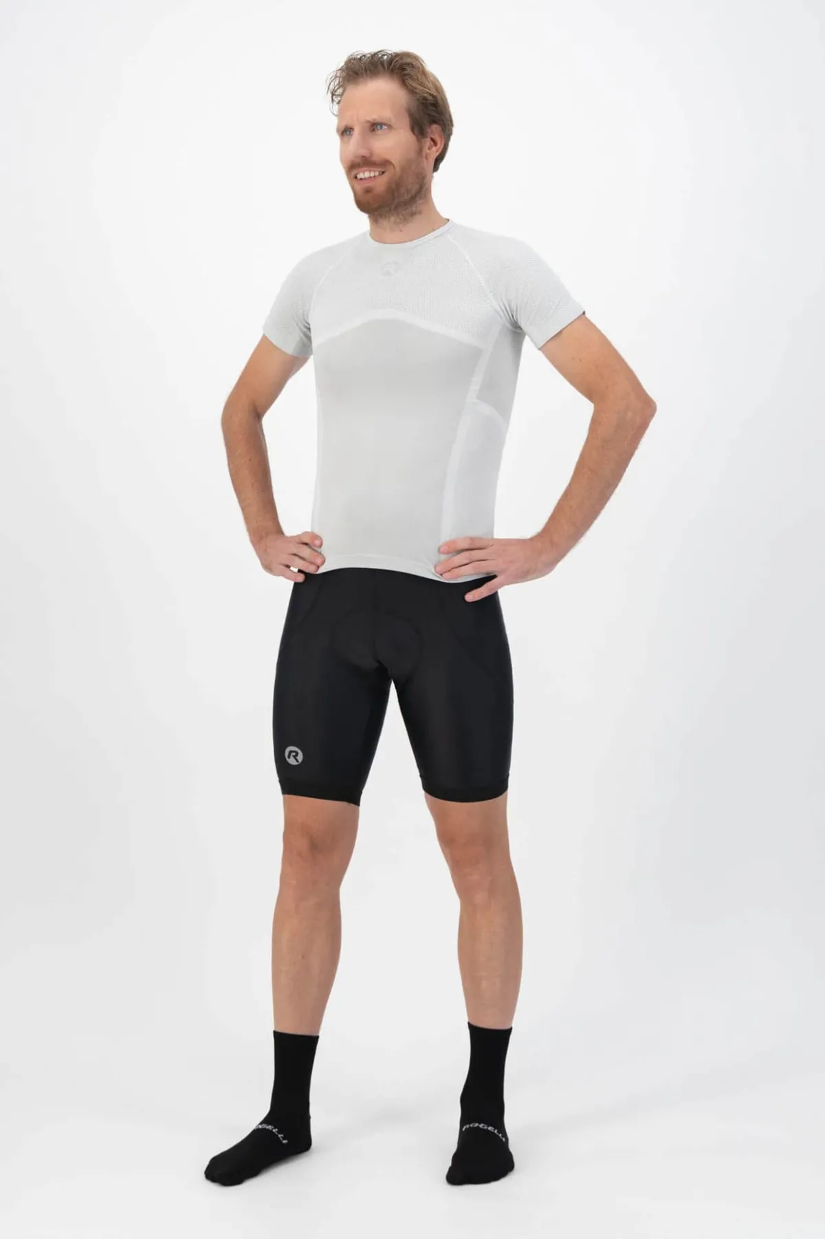 Męskie spodenki rowerowe CORE z przyjemnego i elastycznego materiału o matowym wyglądzie o gramaturze 200g/m2 mają 6-cio panelowy krój. Spodenki są wyposażone w antybakteryjną i anatomicznie ukształtowaną wkładkę Coolmax. Nogawice posiadają silikonowe, antypoślizgowe paski. Ten model posiada płaskie szwy, szeroką gumkę w pasie i praktyczme odblaskowe logo Rogelli.